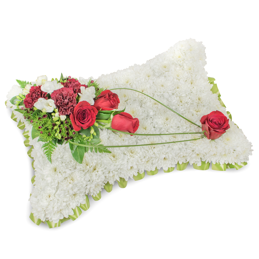 Our Premium Sympathy Flower Arrangement is the perfect way to express your condolences with elegance and grace. This luxurious bouquet features a curated selection of white chrysanthemums, red roses, white freesias, dark red carnations, along with dianthus and bear grass, each flower individually hand-picked for maximum freshness and quality.